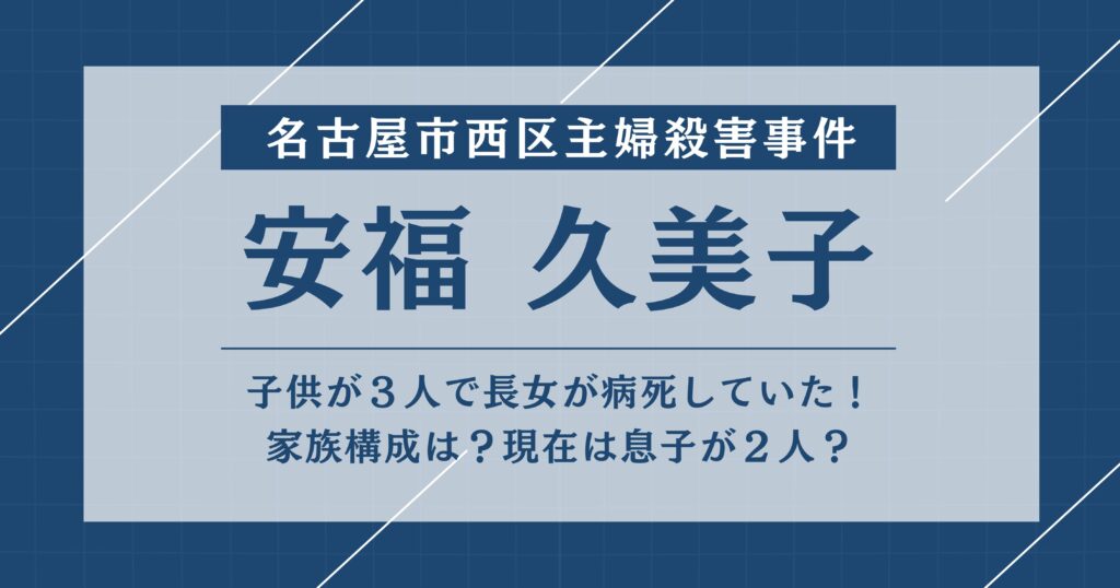 安福久美子の家族は?子どもが3人で娘が病死していた!現在息子が2人?旦那の職業は?
