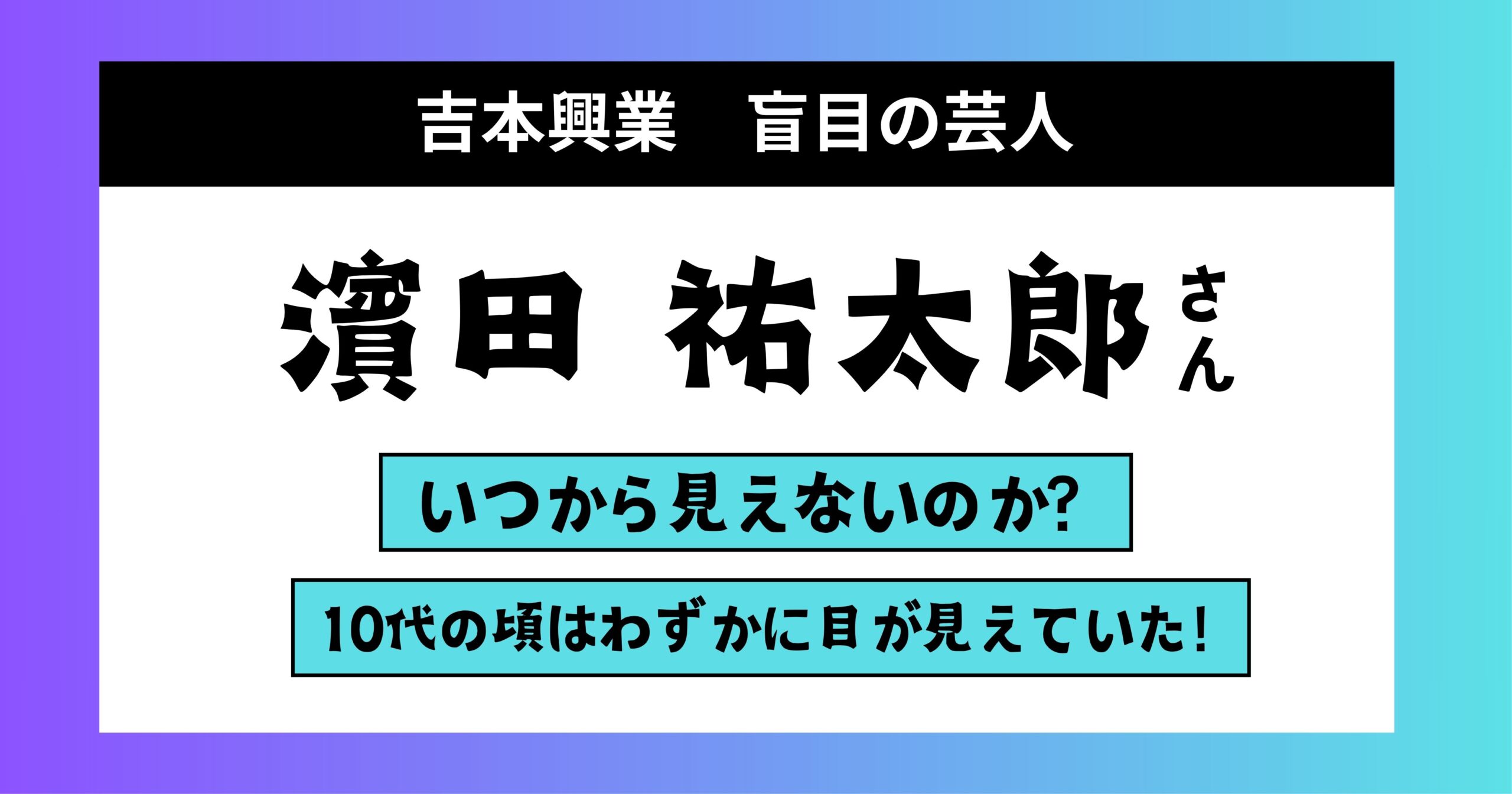 濱田祐太郎はいつから見えないのか?失明の原因は?10代の頃はわずかに目が見えていた!
