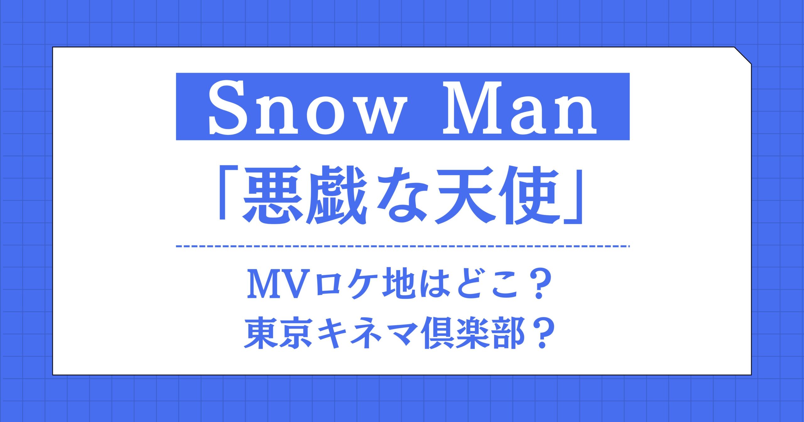 Snow Man(スノーマン)悪戯な天使のMVロケ地は、元グランドキャバレーの東京キネマ倶楽部だった!