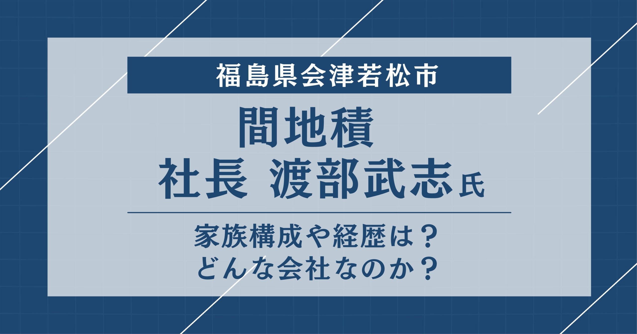 【福島県会津若松市】間地積の社長・渡部武志とは?家族構成や経歴は?どんな会社なのかを徹底調査!