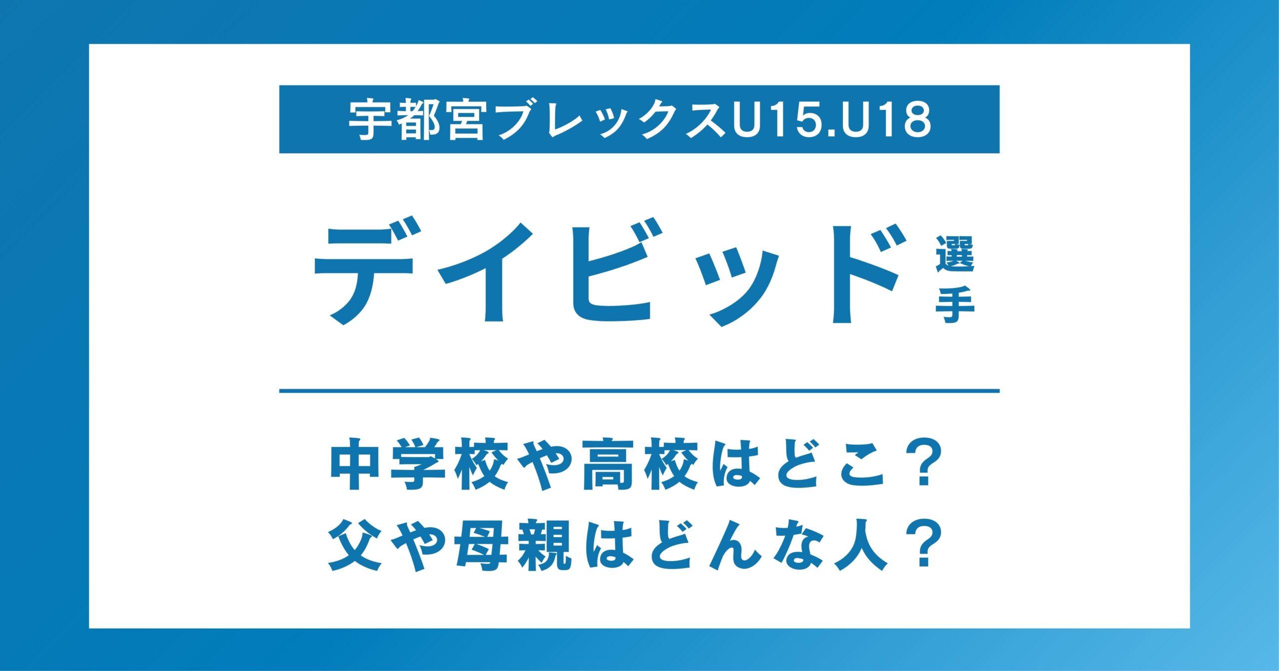 【宇都宮ブレックスU15.U18】デイビッドの中学校や高校はどこ?父や母はどんな人?