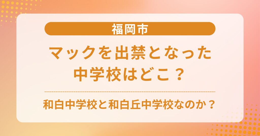 【福岡市】マックを出禁となった中学はどこ?和白中学校と和白丘中学校なのか?