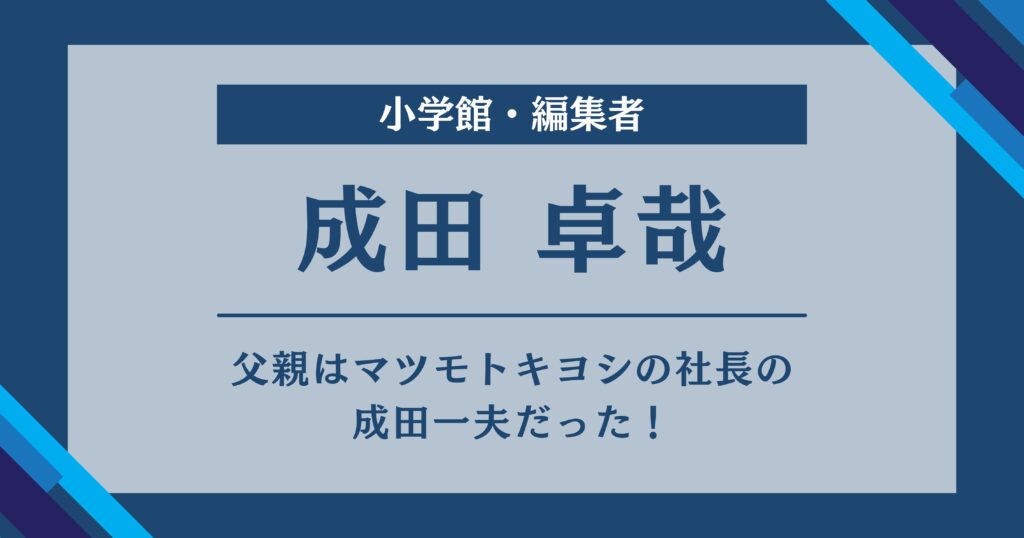 成田卓哉の父親はマツモトキヨシの社長の成田一夫で御曹司だった!【小学館・編集者】
