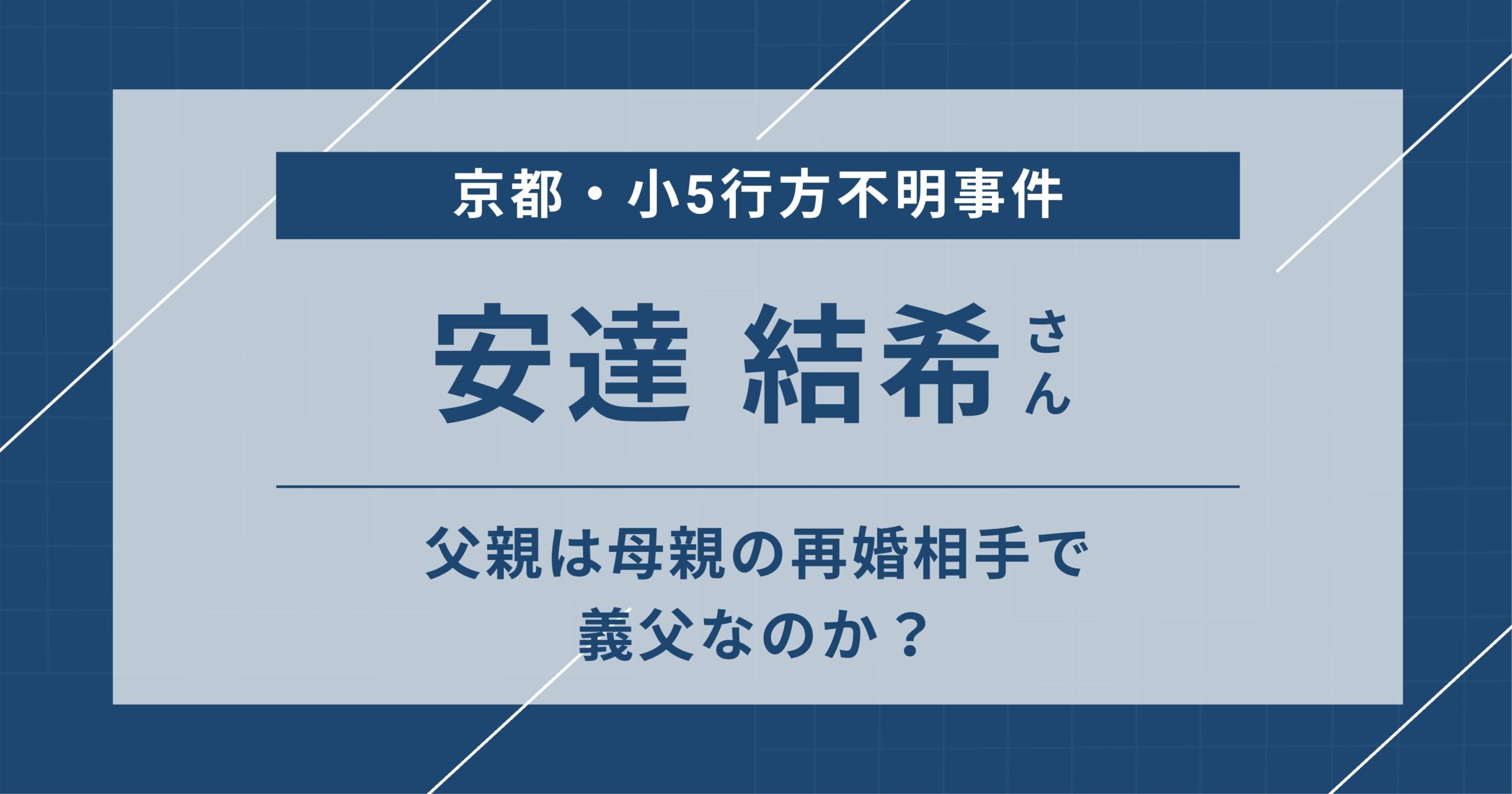 安達結希さんの父親は母親の再婚相手で義父なのか?【京都・小5行方不明】