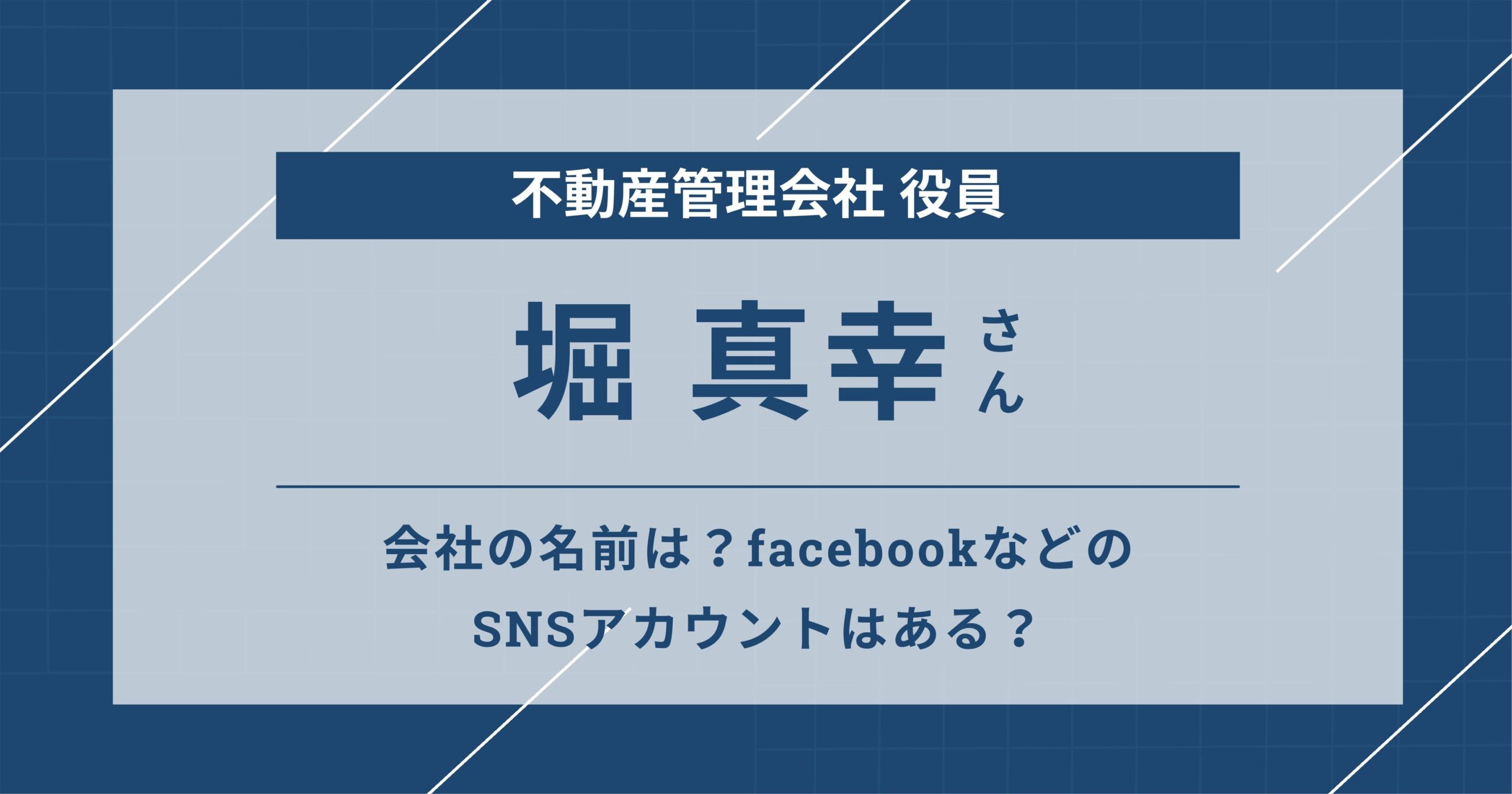 堀真幸(不動産管理会社役員)の会社の名前は?facebookなどのSNSアカウントはある?