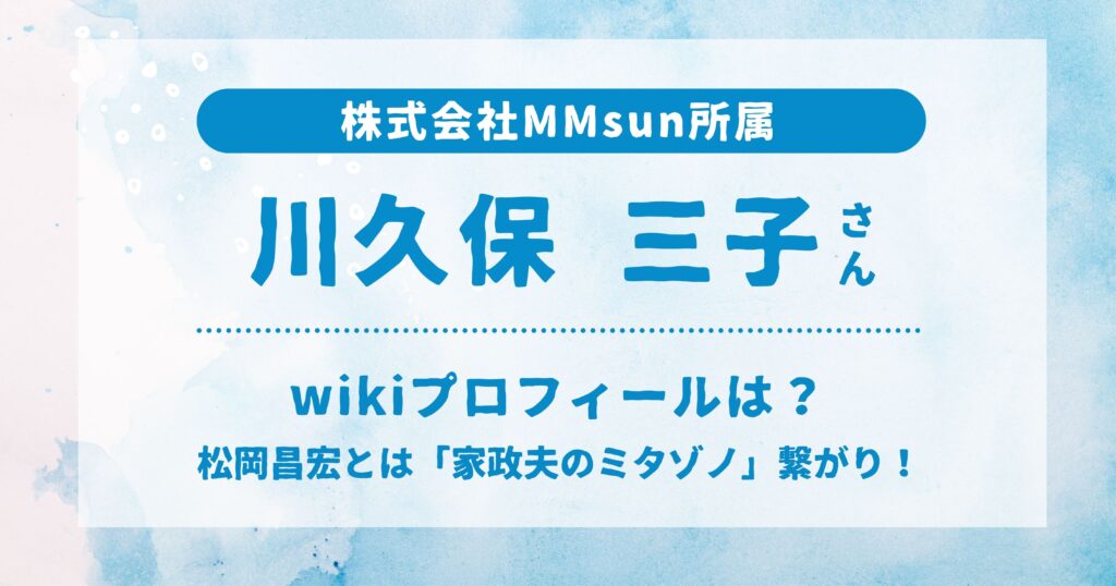 川久保三子のwikiプロフィールは?松岡昌宏との出会いは「家政夫のミタゾノ」!