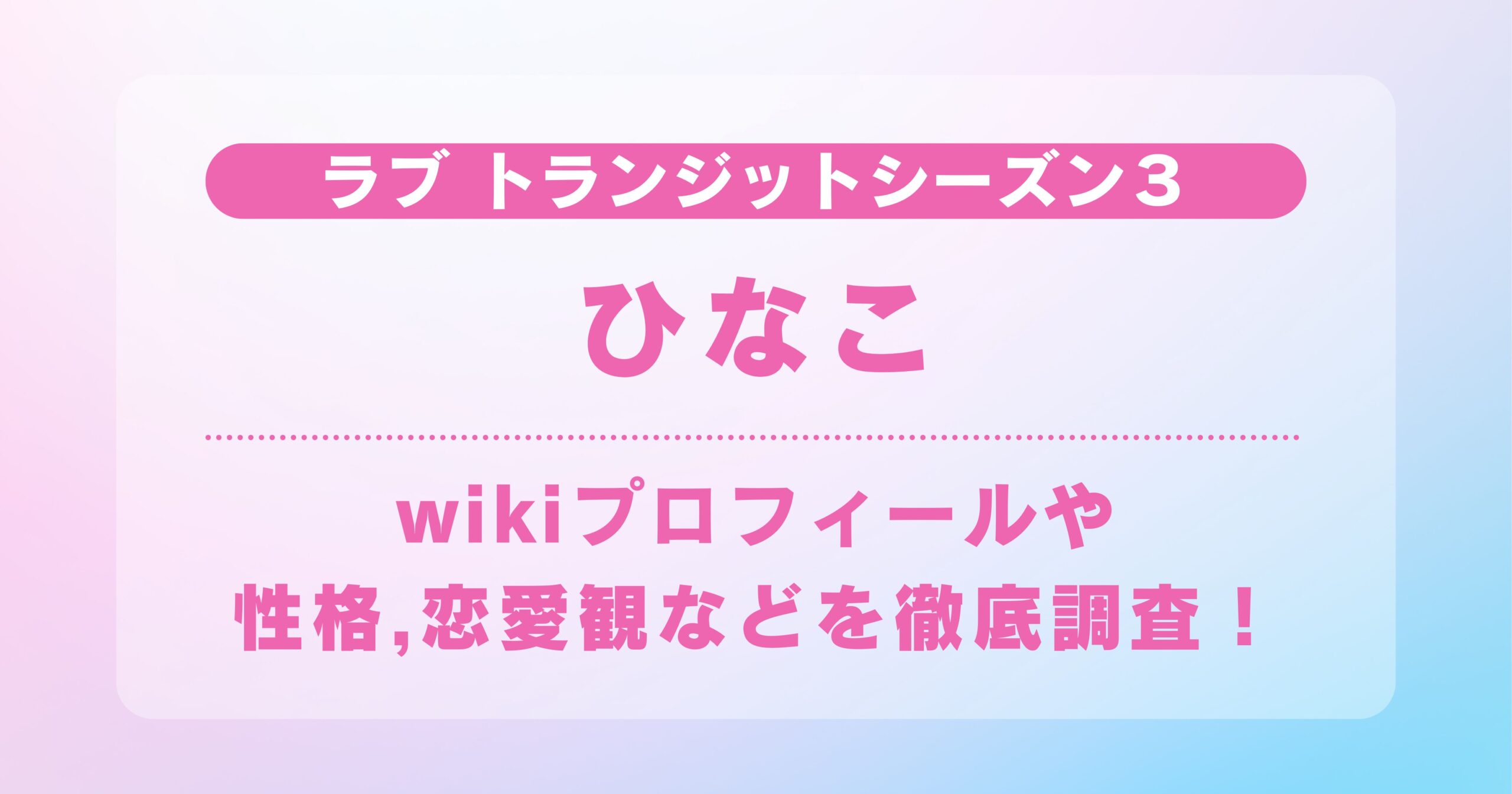 2025年10月16日にスタートする、Amazon Prime Videoの大人気恋愛リアリティ番組「ラブ トランジット」シーズン3。かわいらしい笑顔が印象的な、ひなこさん。現在会社員をしているようですが、どんな人なのか、彼氏は誰なのか詳しくまとめました。