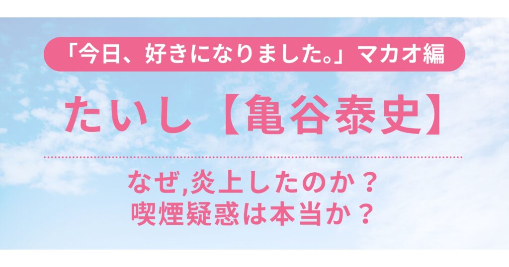 【今日好き・マカオ編】たいし(亀谷泰史)はなぜ炎上?何した?喫煙疑惑は本当か?
