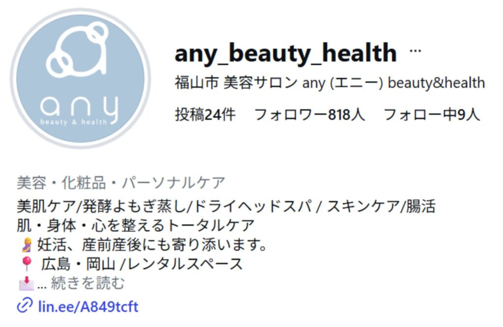 - 福山市 美容サロン「any beauty&health」インスタ any_beauty_health
