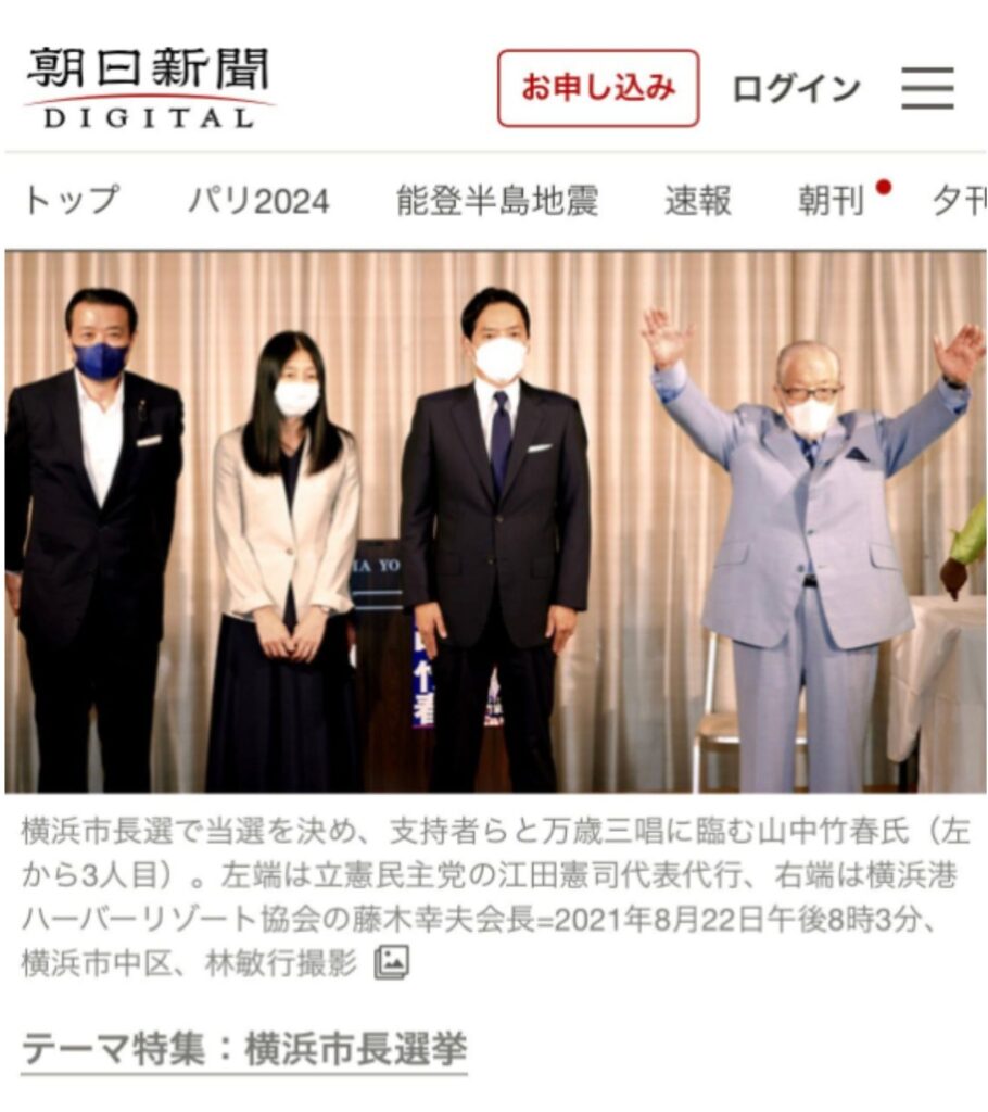 2021年に初当選し、2025年には再選を果たしている横浜市長の山中竹春氏。奥さんや子供はいるのか、家族について詳しく調査しました。
